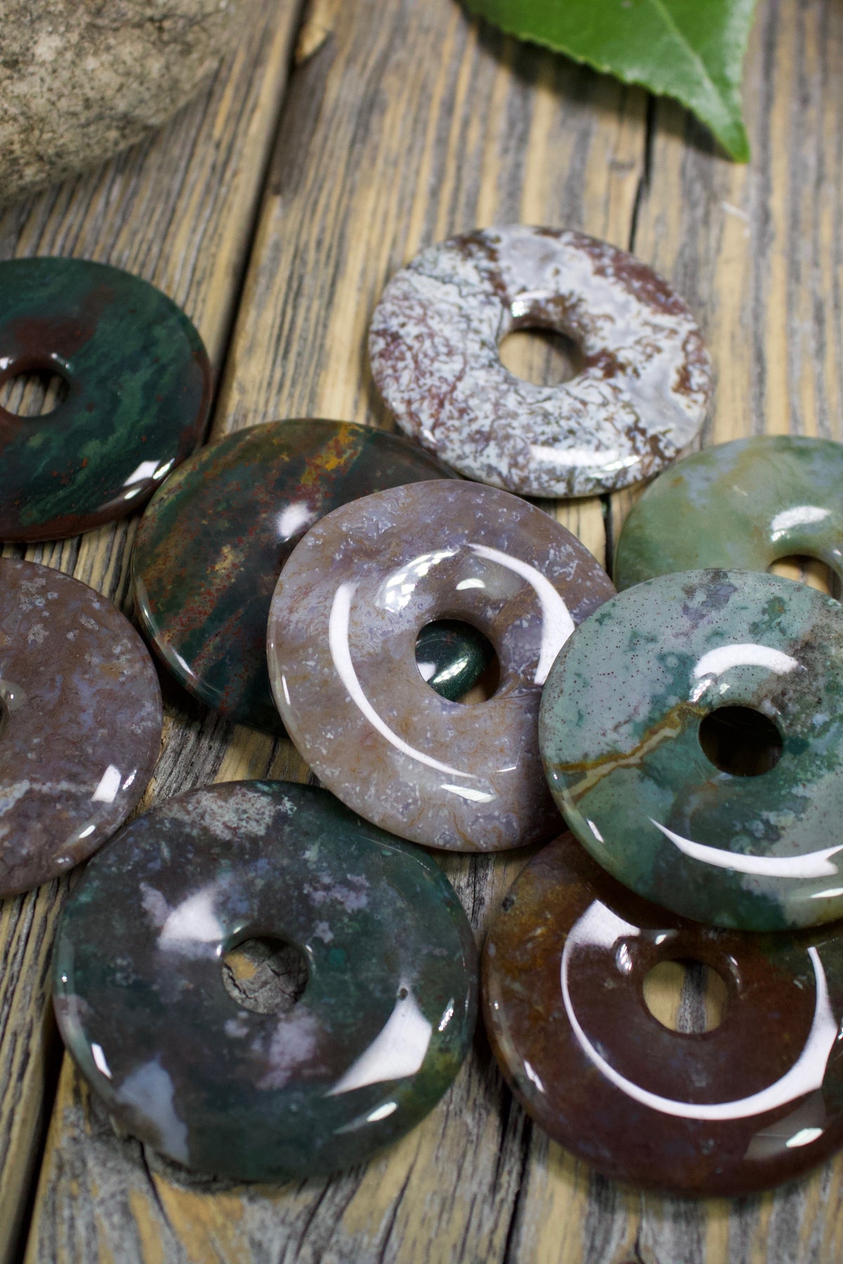 Rainbow Jasper brings peace and tranquility, uniting mind, body, and spirit. It reduces stress and promotes happiness. Rainbow Jasper comes in a broad spectrum of colors and patterns; please see second picture for reference.